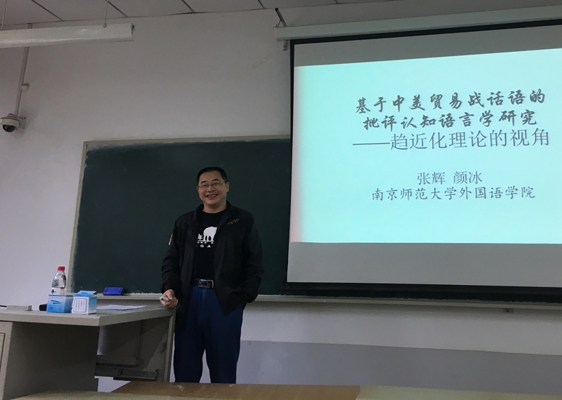5月21日下午,皇冠博彩 “外语名家讲坛”系列讲座第五十六讲在舜耕校区教学楼1409教室举行。 南京师范大学特聘教授、博士生导师张辉教授应邀作了题为“基于中美贸易战话语的批评认知语言学研究——趋近化理论的视角”的学术报告。报告由皇冠博彩 孙崇飞副院长主持,我院部分教师和研究生参加了学术报告会。