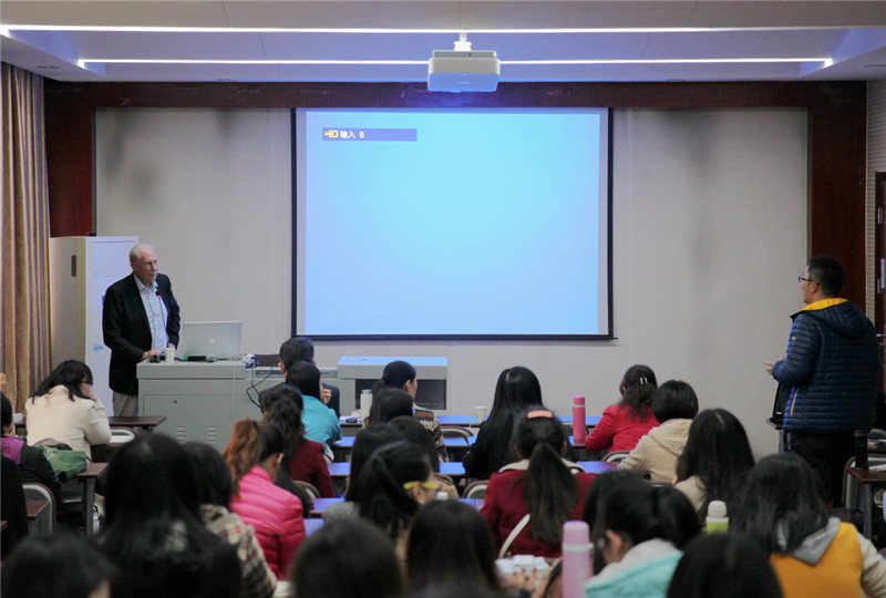 11月5日下午,Panther教授作了题为 “Foundations of Speech Act Theory”的主题报告,主要介绍了语用学言语行为理论(Speech Act Theory)的基本概念及理论体系。报告由哲学家路德维奇· 维特根斯坦(Ludwig Wittgenstein)的“意义即使用”理论引入,之后分别介绍了语言哲学家奥斯汀(John L. Austin)及塞尔(John R. Searle)的言语行为理论,最后阐述了Panther教授本人对言外行为组成要素(illocutionary act components)的独特见解。Panther教授首先阐述了言语行为理论的哲学基础,即哲学家维特根斯坦对“意义”的界定:“The meaning of a word is its use in the language”,结合语言实例从言语行为的类型(categories)、言语行为的适切条件(felicity conditions)及言语行为中最重要的言外行为(illocutionary act)三个方面详细解读了奥斯汀的言语行为理论。之后,Panther教授介绍了塞尔(1976)提出的五种言外行为及分类标准并在此基础上提出了个人对言外行为组成要素的见解,介绍了会话者要素(interlocutor components)、社会要素(social components)、本体论要素(ontological components)等十大组成要素。