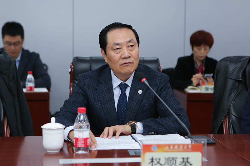 我校校长、教育部高等学校经济与贸易类专业教学指导委员会主任委员赵忠秀教授以“鲁日韩经贸合作与东亚区域价值链构建”为题,从历年中日韩进出口规模、双边贸易占全球市场的份额以及中日韩进出口产品结构入手,深入浅出地探讨了动态掌握中日韩双向贸易数据库的重要性,提出研究院的建设重点之一就是要为政府和企业提供数据服务。同时,他转达了国家卫健委疾控局巡视员贺青华对研究院成立的良好祝愿。