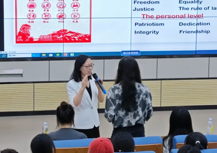 皇冠博彩 国际语言服务现代产业学院执行院长、院长助理张斐瑞副教授主讲了《综合商务英语》。课程以商务场景为背景,强化学生的英语听、说、读、写能力。课堂以“leadership”单元为例,从马斯克的领导风格开始,引入领导力风格的具体内容,通过背诵、视译、理解、反思等教学方法和环节,多角度培育学生的语言能力,帮助学生在不同情境下应用所学知识。