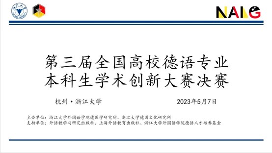 2023年5月14日,第三届全国高校德语专业本科生学术创新大赛总决赛成功举行,全国各地师生线上线下齐聚一堂,共享学术交流盛宴。本次大赛群英荟萃,共吸引了包括北京大学、复旦大学、北京外国语大学、上海外国语大学在内的来自全国52所学校的155支队伍、219名德语专业本科生报名参赛。大赛受到外语教学与研究出版社、上海外语教育出版社、浙江大学皇冠博彩 德语人才培养基金支持。
