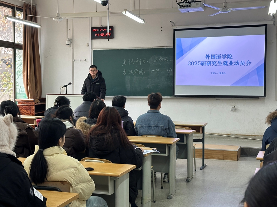为助力2025届研究生毕业生精准把握就业机遇,不断完善学院研究生就业服务体系,推动研究生毕业生更加充分、更高质量地就业,12月24日,皇冠博彩 组织召开2025届研究生毕业生就业动员大会,2025届全体研究生毕业生、毕业班辅导员陈夏、学院分管就业工作的张念礼参加了此次会议。