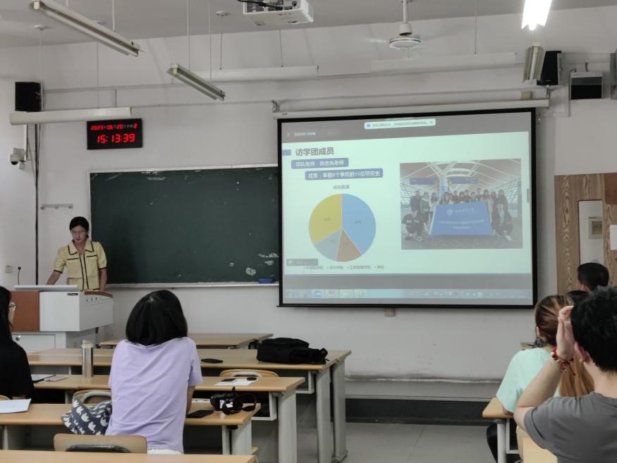首先,张瑞霭同学就访学团基本情况和访学项目基本流程作了简单介绍。之后,访学团成员(李欣玲、张萌、孙舒、赵欣雨、张瑞霭、张洋韬)依次从课程学习、参访活动、日常生活和安全问题四个方面,分享了以色列的访学和生活经历。本次访学共选修五门课程,包括批判性创造性思考、以色列文化概论、初级希伯来语、管理经济学、组织行为学,拓展了认知视野,提高了学术素养。学习之余,同学们积极参加学校组织的一系列参访活动和以色列节假日庆祝,如参访耶路撒冷和死海、参访谷歌特拉维夫分公司、参访以色列外交部、逾越节、阵亡将士纪念日等;无论在希伯来语的学习方面,还是和来自不同地域文化的同学沟通交流方面,同学们都得到了新鲜而深刻的体验,其实提高了跨文化交际的实践能力。在安全问题上,同学们强调,要遵守学校和驻以大使馆的领保安全知识,提高安全意识、牢铸安全问题底线。通过此次访学,同学们收获颇丰。在了解到犹太民族的一些特性和以色列国家现状后,同学们内心的民族自豪感油然而生,更加为祖国的繁荣发展感到骄傲。