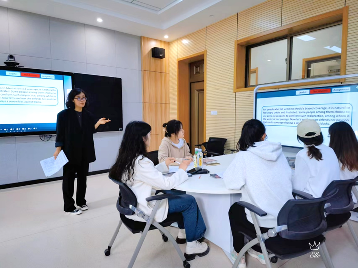 本次教学观摩活动以“外教社杯”全国高校外语教学大赛为契机,经过近一个月的集体备课研讨,比赛教学团队精心制作了示范课件和说课稿。教材选用上海外语教育出版社《综合教程4》的第12单元Bias,英语系王愿菲老师担任本次教学观摩的主讲教师。