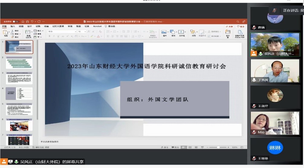 3月9日下午,丁兆国副院长主持召开外国文学团队科研诚信教育与学术热点研讨会,团队成员王淑芹、高永红、王爱燕、张兆龙、王琳琳、卢长兰、徐蕾、商倩、吴风正等参与研讨,分别就科研诚信、外国文学教学动态、学术期刊论文写作等相关问题展开了热烈的讨论。团队成员认真学习了关于科研诚信教育的相关文件,并结合2022年国家相关部委就科研诚信出台的针对性指导文件发表了各自的看法,同时围绕2022年科研诚信十大事件,并具体结合外国文学方向的专业特点谈及了自身的认识,尤其是在涉及外国文学学术论文写作、国家社科基金项目申报以及国外专业学术期刊的评定等方面的话题展开了细致的讨论。在交流环节,各位与会者分别结合自身经验,进行了热烈的交流。