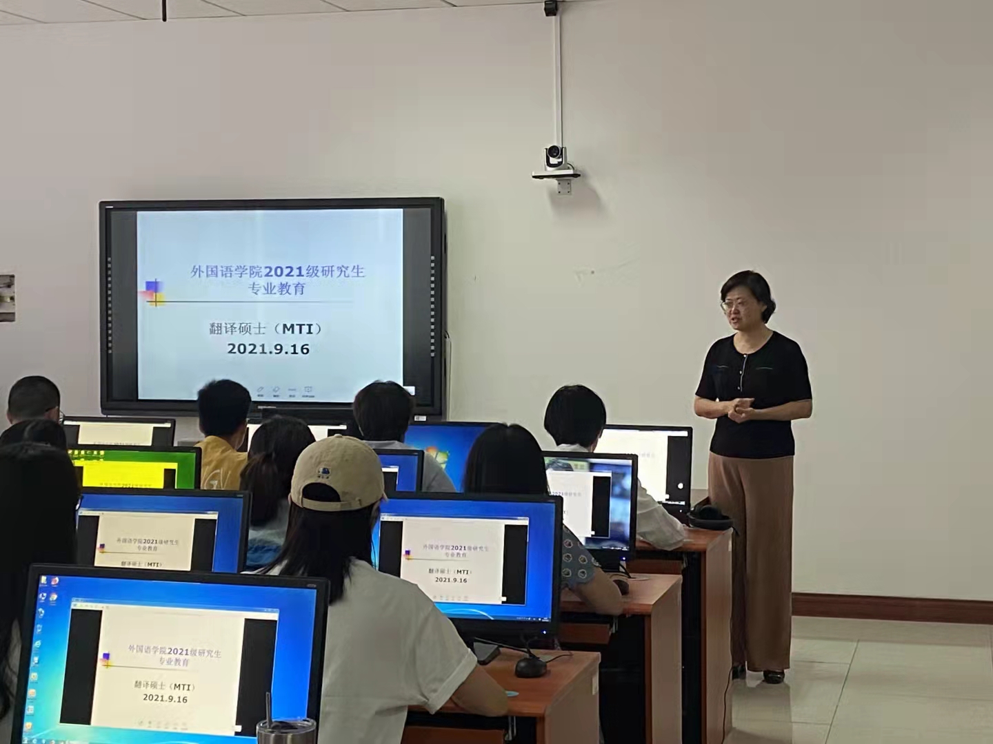 9月16日下午,学院2021级研究生入学专业教育在舜耕校区3号教学楼3307教室、实验楼412室、干训楼9226室分别举行。学院副院长史汝波教授、MTI教育中心主任解玲教授、日语系主任冯晶副教授分别进行专业引导。