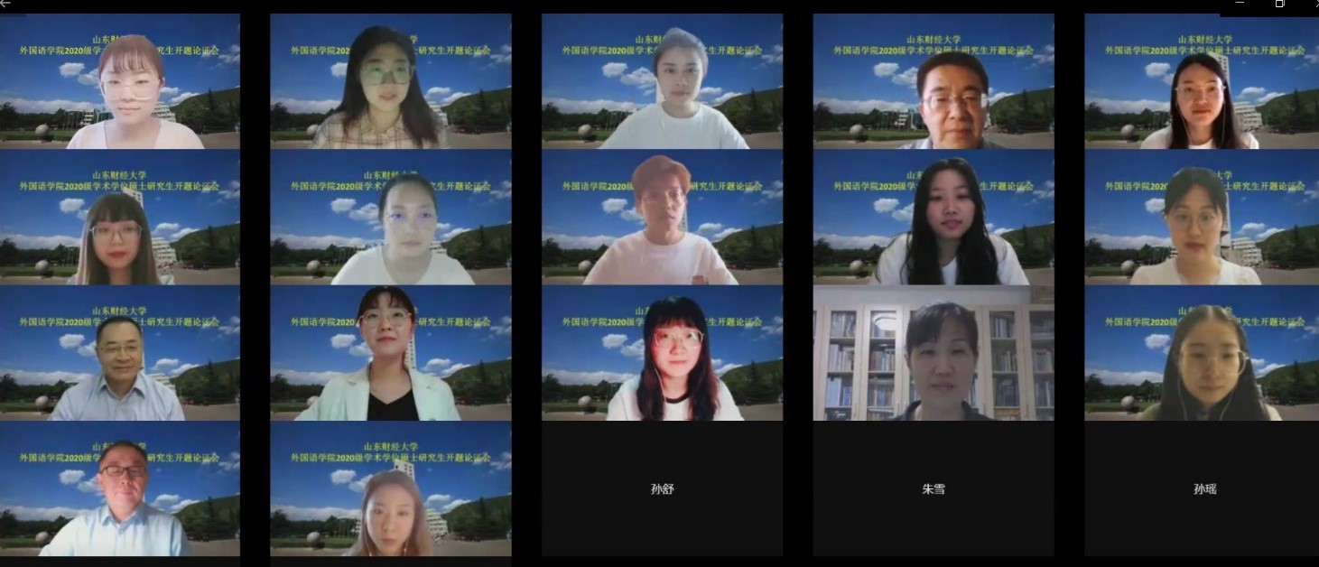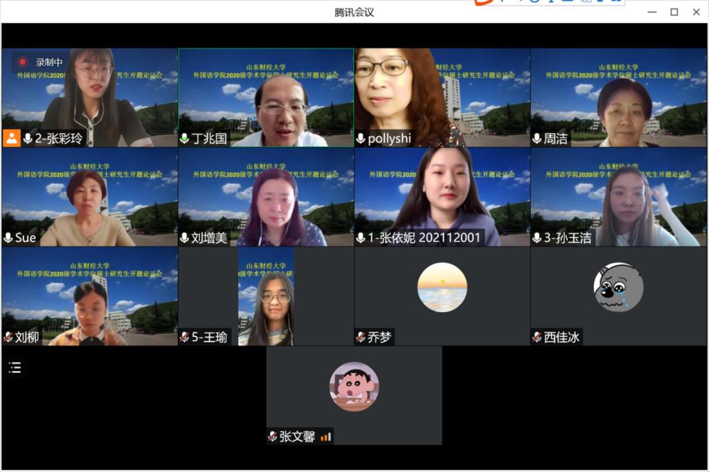 2022年5月25日下午,皇冠博彩 2020级学术学位硕士研究生开题论证会于舜耕校区举行。2020级日语语言文学、英语语言文学、外国语言学及应用语言学三个专业的研究生参加了本次论证会,学生就论文选题的研究意义和价值、研究状况及拟解决的问题、研究方案和进度等作出说明,并进行可行性论证。经专家组论证,全部学生通过了本次论文开题。