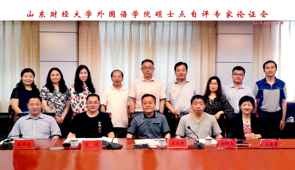 6月26日下午,外国语言文学硕士一级学位点合格评估评审会在我校舜耕校区召开,国务院第七届外国语言文学学科评议组成员北京外国语大学王克非教授、国务院第七届外国语言文学学科评议组成员对外经贸大学向明友教授、南京大学杨金才教授、南京师范大学张辉教授、山东大学王俊菊教授和曲阜师范大学秦洪武教授考察外国语言文学一级学科硕士学位授予点建设情况,并参加学位点自我评估工作会议。我校学科建设办公室马玉林主任,皇冠博彩 李毅院长、史汝波副院长、孙崇飞副院长及部分学科带头人等参加会议。