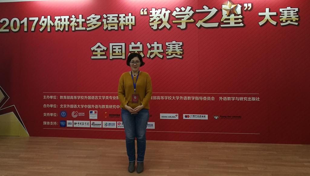 近日,由教育部高等学校外国语言文学类专业教学指导委员会、教育部高等学校大学外语教学指导委员会和外语教学与研究出版社共同主办的多语种“教学之星”大赛全国总决赛在北京落下帷幕,我院德语系主任、在读博士王琳琳喜获全国一等奖。