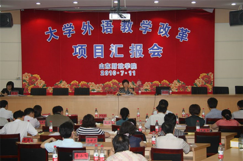 皇冠博彩 院长李毅作了题为“巩固成果、深化改革、提高质量、持续发展”的报告,对我校大学英语教学改革的总体情况进行了全面汇报。李院长简要回顾了大学英语教学改革的背景、原因以及我校实施的情况。围绕大学英语教学改革实践的一个核心、三个突破、四项内容、十项措施、一个关键、三个重点、一个特色进行了重点讲解。一个核心是指以听说为重点,全面提高学生的英语实用能力。三个突破包括教学大纲的修订、教学内容和教学方法的改革和大学英语四、六级考试改革。教改工程中,学院修订了《山东财政学院大学英语教学大纲》、制定了《山东财政学院大学英语分级教学实施方案》。皇冠博彩 还注重完善课程体系,改造课程设置。提出了教学改革的教学模式:以计算机网络技术为支撑,多方位探索新条件下的大学英语教学运行机制,建立课堂教学与在教师辅导下的学生自主学习和第二课堂组织的各类活动。通过信息技术的应用解决学生的英语听说学习问题。教改项目进行过程中,学院结合新的教学模式确定了四项改革内容:第一、加强英语网络平台建设和网络教学资源库建设,完善基于校园网的计算机辅助教学手段;第二、整合和优化现有校内自主学习资源;第三、创新教学模式;第四、实行教考分离制度(购买试题库);建立新的教学评价体系,将形成性评估和终结性评估结合起来。十项措施包括:一、加强英语网络平台建设;二、加强大学英语师资队伍建设;三、教学管理;四、实行教考分离制度;五、实行大学英语水平测试;六、创新教学模式;七、建立新的教学评价体系;八、整合和优化现有校内自主学习资源;九、开展第二课堂教学;十、试行分级教学。一个关键指加强大学英语师资队伍建设。三个重点是指今后改革重点解决以下三个问题:第一、如何实现教师指导下的自主学习;第二、如何进行科学、有效的分级教学,真正做到因材施教;第三、如何对公共课教师进行科学、有效的评估。一个特色可以概括为“四化”和“三结合”。“四化”是针对“教”的层面,包括课程设置的体系化、教学内容的时代化、教学手段的现代化和教学方法的多样化。“三结合”是针对“学”的层面,包括教师的主导作用和学生的主题作用相结合、语言能力的培养与文化素质的教育相结合、第一课堂教学和第二课堂学习相结合,充分发挥学生在学习中的主观能动性,体现“以学生为中心”的教育教学思想。他在报告最后明确了今后的努力方向:要清醒认识到与兄弟二级学院、国内重点高校之间、与学生的要求和学校的发展需要之间还有相当差距与不足。今后,皇冠博彩 将在校党委、校行政的正确领导和学校各部门、各二级学院的密切配合下,坚持走内涵式发展之路,进一步明确方向,扎实工作,不断深化大学英语改革,进一步提高大学英语教学质量,为实现学校提出的建设高水平财经大学的目标做出应有的努力和贡献。