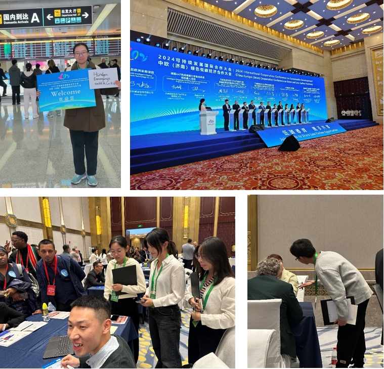 10月22日至24日,2024可持续发展国际合作大会暨中欧(济南)绿色低碳经济合作大会在济南山东大厦举办。本次会议聚焦“低碳春辉 携手共享”主题,汇聚中国贸促会、驻华使领馆、国际组织和国际商协会代表;世界500强企业、欧洲企业和“一带一路”共建国家企业代表;省直部门、省属国有企业代表;高校专家、知名学者等共约500人,围绕推动绿色低碳可持续发展领域的国际合作、企业绿色高质量发展、提高能源利用效率等议题开展对话交流。我院党委书记姜竹青作为特邀嘉宾出席了会议,同时院长助理阮岳湘、张斐瑞、聂喆参会。商务英语系和英语系60名本科生、14位翻译硕士同学为大会提供为期4天的语言服务和陪同翻译工作。