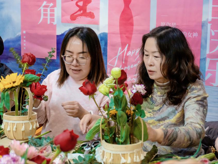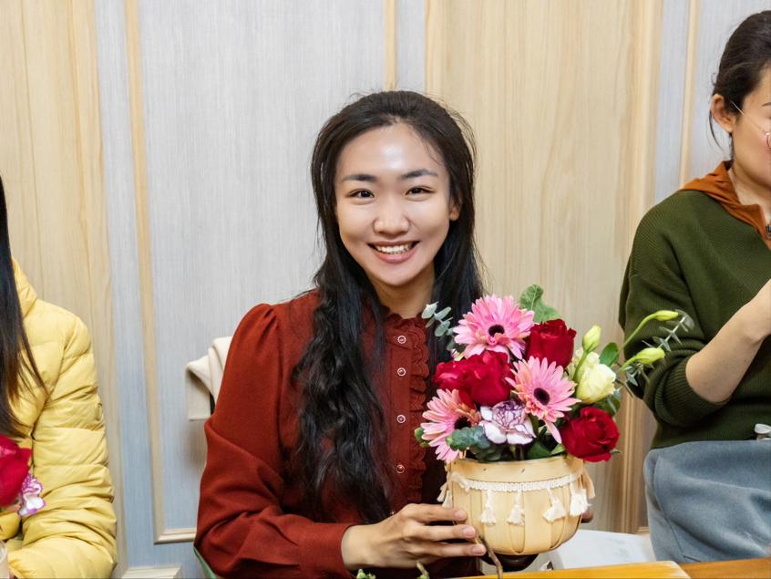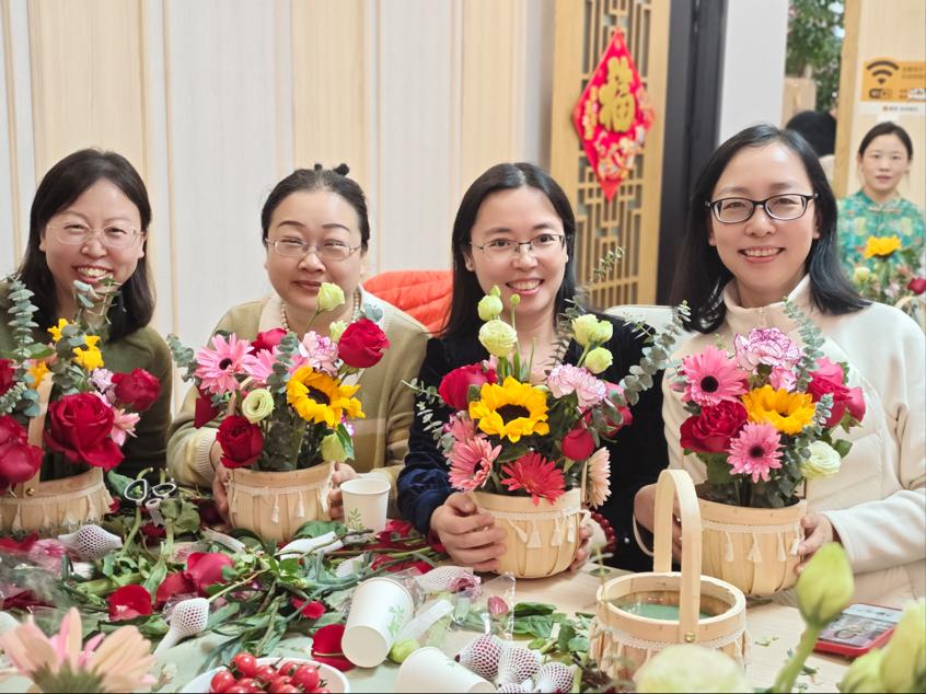 踏青结束后,教师们移步至悠然茶社,开启了一场充满艺术气息的插花沙龙。活动伊始,学院党委副书记、工会主席王恩娟代表学院亲切地向女教职工们送上节日的祝福,并对她们长期以来为学院的发展做出的贡献表示感谢,同时鼓励女教职工们在忙碌的工作中学会放松身心,健康生活。扎实推进学校“一一三九”发展思路,以更加饱满的热情、高昂的斗志、务实的作风为学校和学院高质量发展贡献智慧和力量。