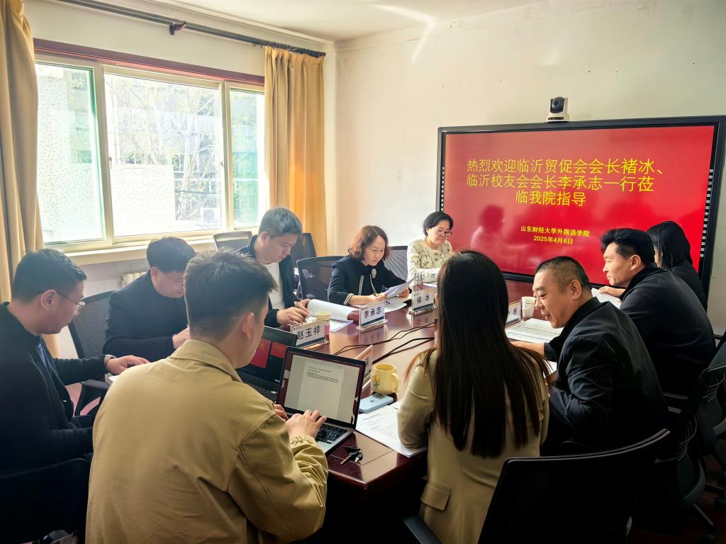 4月6日上午,临沂市贸促会会长褚冰、山财校友会临沂代表处会长李承志、副会长赵玉祥、秘书长张敬轩一行访问我院。校合作发展处副处长徐彬、院长于秀金、院长助理兼国际语言服务产业学院执行院长张斐瑞、产业学院团队成员参加座谈。双方围绕人才培养、校企合作等议题展开讨论,并就推进产教融合、服务区域经济发展达成多项合作共识。