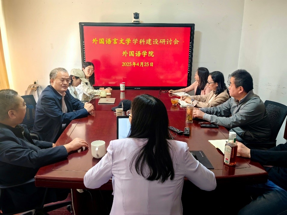 25日上午,周长银教授与学院领导班子及骨干教师举行外国语言文学学科建设研讨会。会议聚焦科研规划、团队建设与学科特色凝练,周教授结合国家社科基金项目评审经验及北京第二皇冠博彩 学科发展案例,提出多项建议,鼓励学院以“外语+财经”为特色,探索跨学科研究,形成差异化优势,优化项目申报策略、推动学术成果转化等。