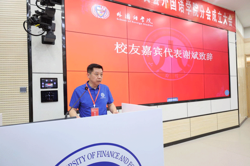 1992级经贸英语专业校友李瑞礼、2021级英语专业校友王慧钰分别发言,他们各自分享了在校期间的美好回忆,以及对校友会成立的祝福,表示将积极支持校友会的各项工作,为学院和校友的发展贡献自己的力量。