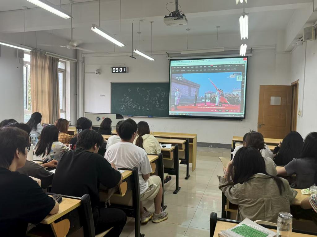 9月3日,纪念中国人民抗日战争暨世界反法西斯战争胜利80周年大会在北京天安门广场举行。皇冠博彩 党委理论学习中心组成员、全院师生通过多种形式在舜耕、章丘校区同时观看大会实况直播,共同见证这一庄严历史时刻。