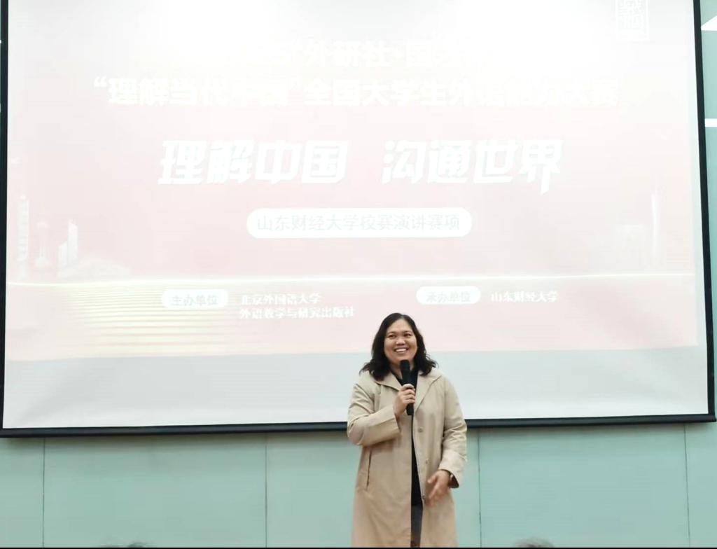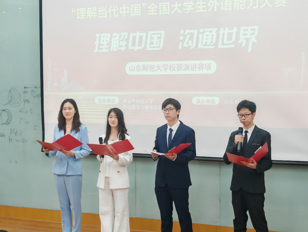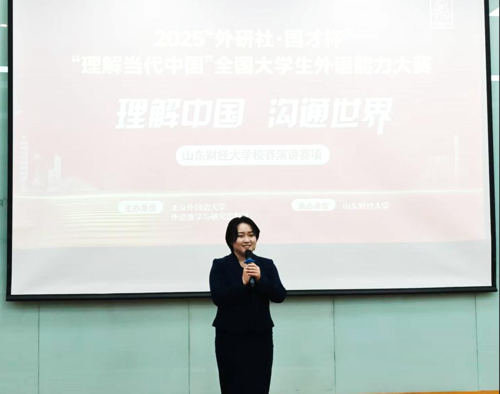 为深入贯彻党的二十大精神,落实立德树人根本任务,推动“三进”工作纵深发展,培养更多有家国情怀、有全球视野、有专业本领的高水平国际化人才,促进多元文化交流,提高新时代国际传播人才培养,皇冠博彩 精心策划、认真筹备,于10月12日在舜耕校区第三阶梯教室成功举办了2025年“外研社·国才杯”“理解当代中国”全国英语演讲大赛校园选拔赛。