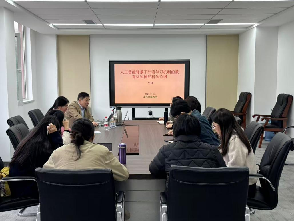 院长、广东外语外贸大学“云山杰出学者”卢植教授应邀莅临我院“外语名家讲坛”第一百八十一讲,做题为“教育认知神经科学视域下人工智能外语学习机制探析”的学术报告。讲座由孙娟老师主持,我院教师及研究生积极参加了本次讲座。