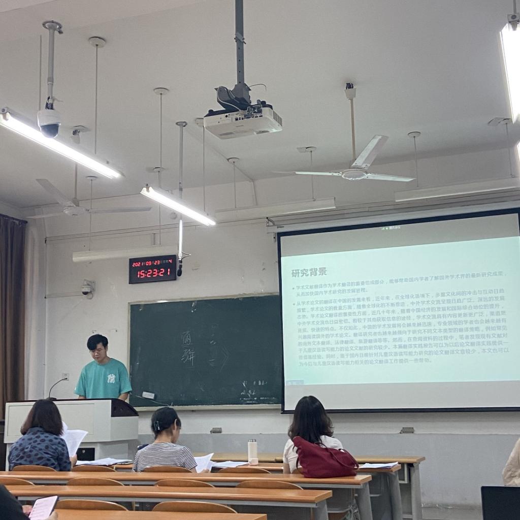 2021年9月23日下午,皇冠博彩 2020级翻译硕士研究生开题论证会于舜耕校区举行。2020级英语笔译、英语口译专业的40名研究生参加了本次论证会,学生就论文选题的研究意义和价值、研究状况及拟解决的问题、研究方案和进度等作出说明,并进行可行性论证。经专家组论证,全部学生通过了本次论文开题。