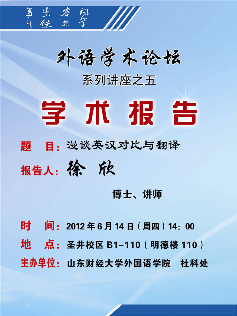 外语学术论坛—系列讲座之五 《漫谈英汉对比与翻译》