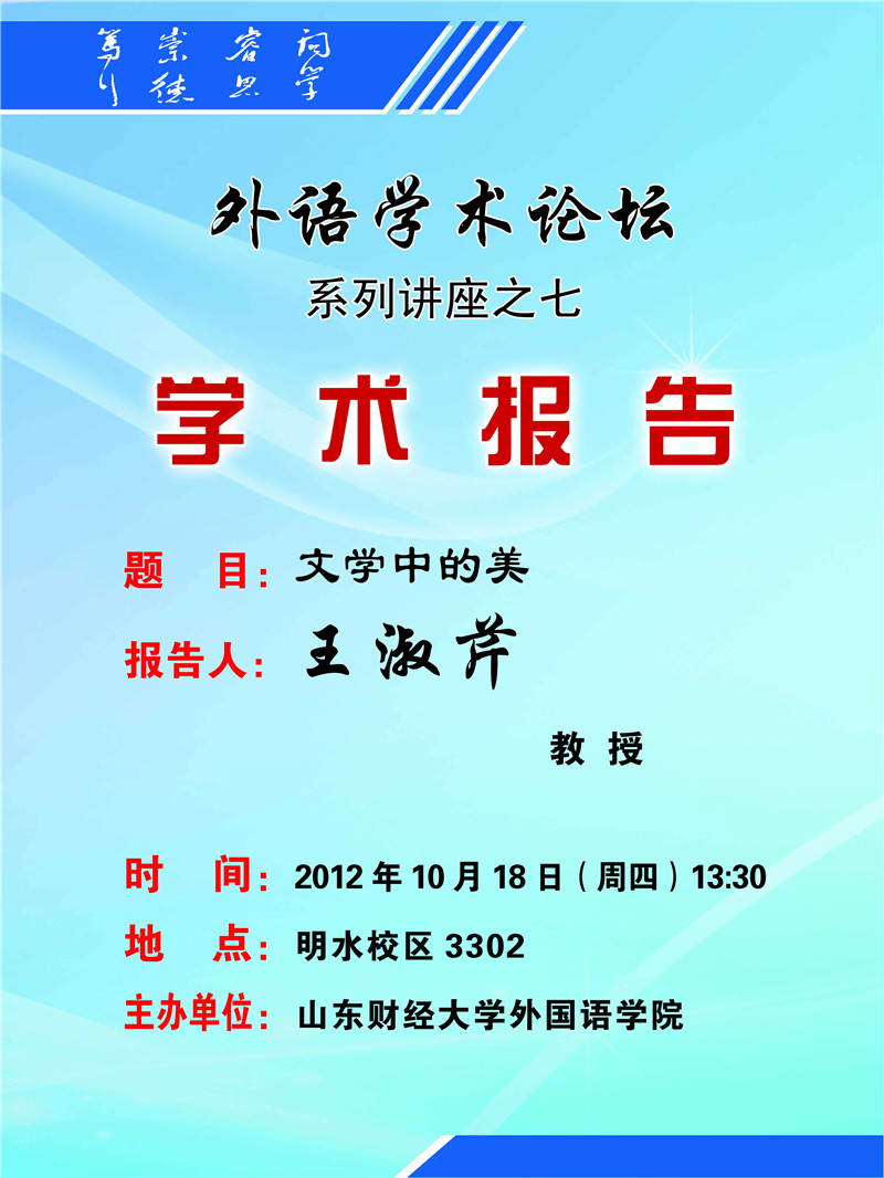 外语学术论坛—系列讲座之七《文学中的美》