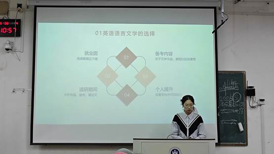 为充分发挥优秀学子的示范引领作用,助力学生明晰考研方向、优化备考策略,皇冠博彩 于5月8日晚在皇冠博彩 舜耕校区成功举办2025年考研经验分享会。2021级考研以及出国(境)申请成功的优秀学生代表受邀出席本次活动,为百余名学子提供精准指导。2023级英语四班孙琛同学担任本次活动主持。